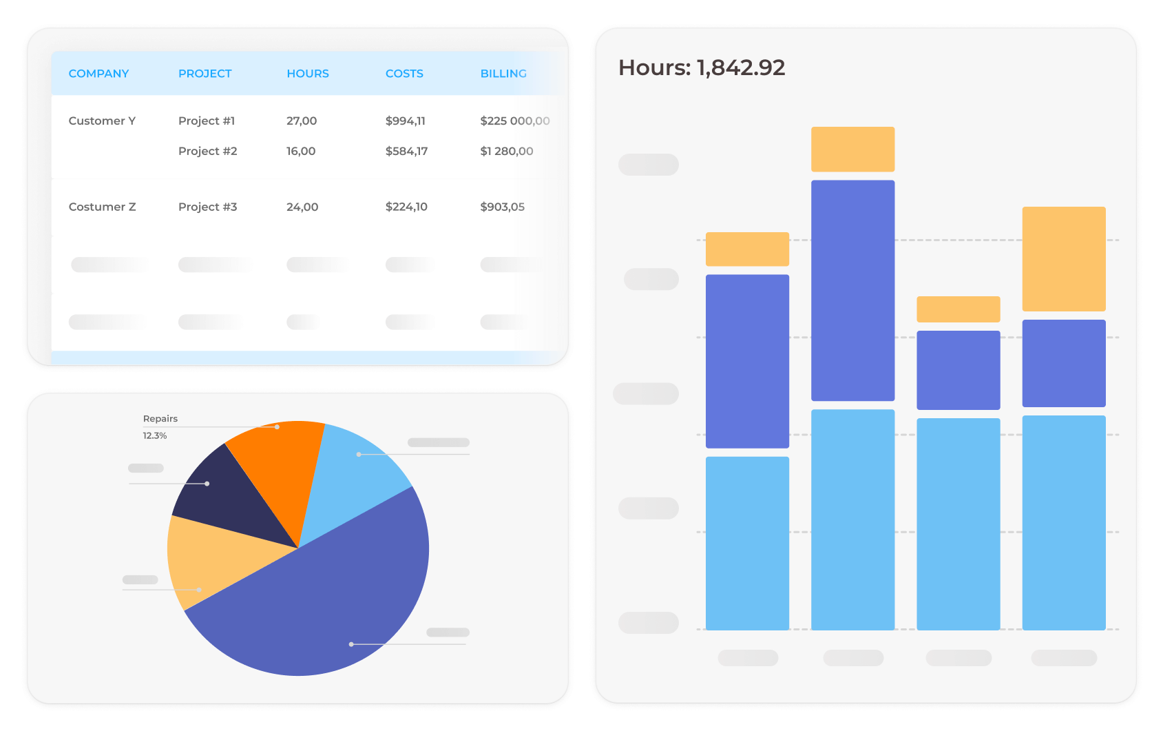 Reports combine financial and time data for an accurate picture of costs and productivity.