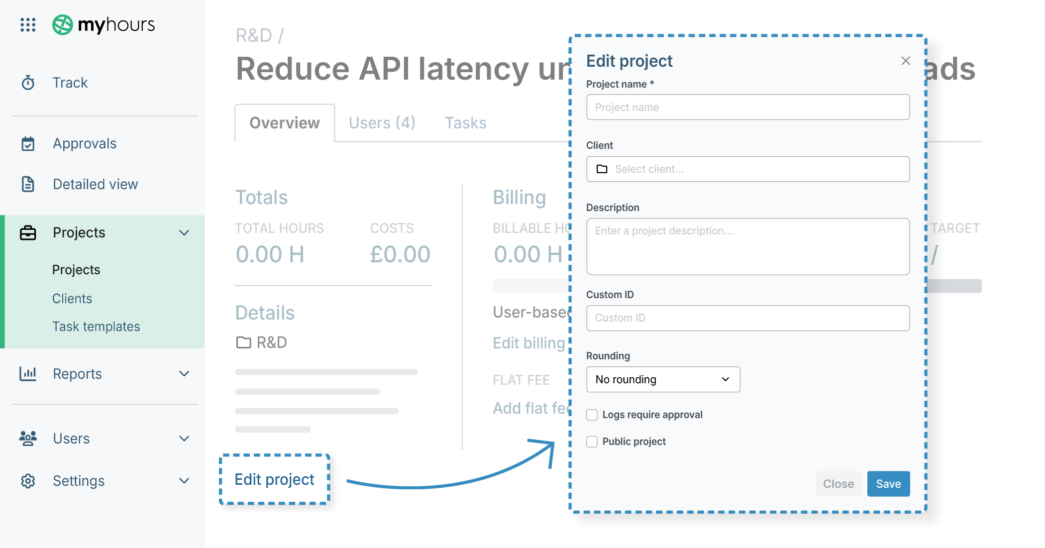 You can set up billing structures in My Hours to match how you invoice your clients. Each project gives you the following options: